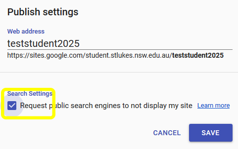 To allow your teachers to mark your Google Site in CANVAS you will need to set up your Google Site with these specific sharing settings.