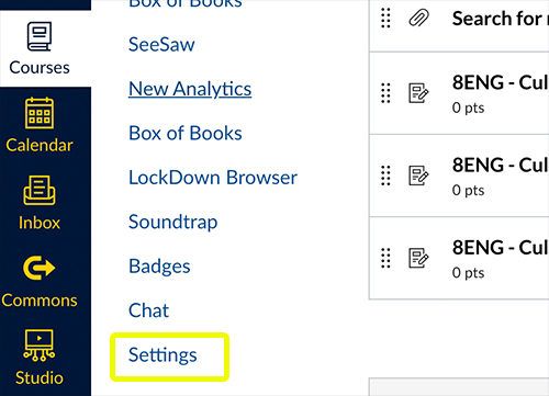 Each individual Canvas Course potentially has different menu options on the side menu.