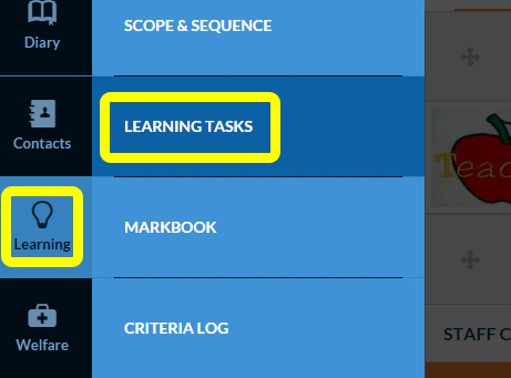 - Select Learning Tasks from the Learning tab of the main menu bar