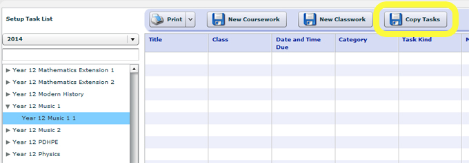 - Select the course that you want the old task to come into – in the current year (do not go to the previous year task that you want to copy). Then select Copy Tasks