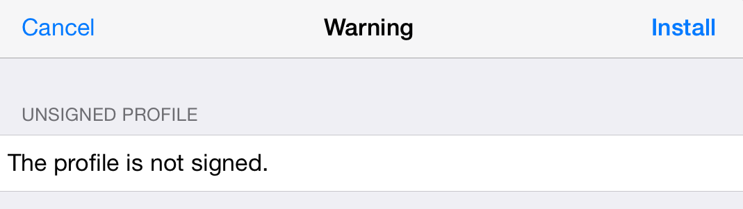 - After selecting “Continue”, you will be redirected to the Settings app to install a profile. Select “Install”