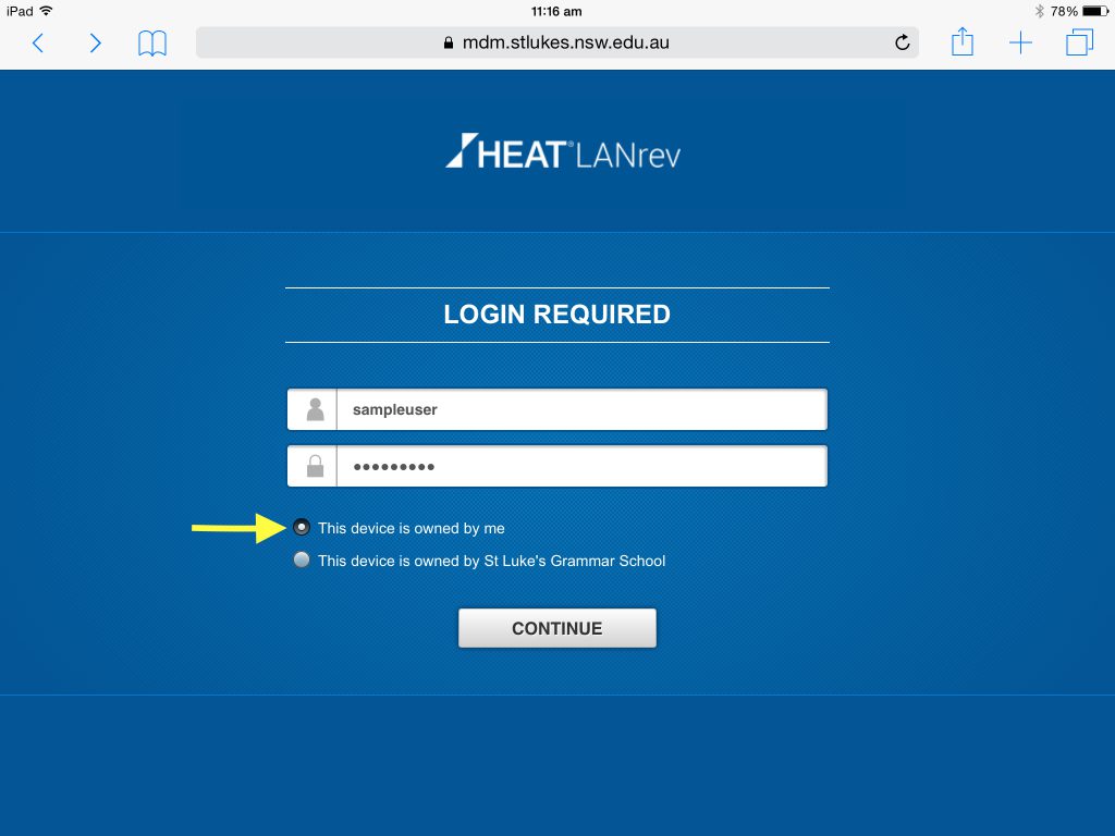 - Open Safari and browse to http://mdm.stlukes.nsw.edu.au/