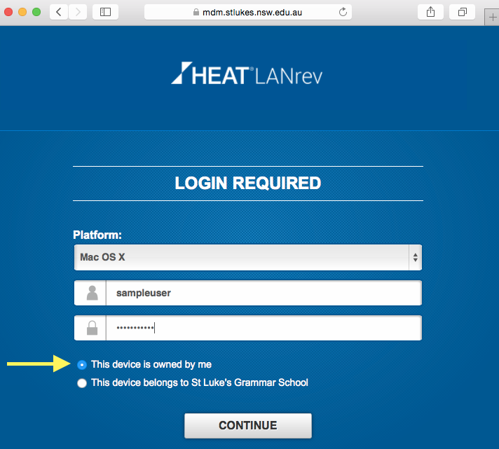 - Open a web browser such as Mozilla Firefox, and browse to http://mdm.stlukes.nsw.edu.au/