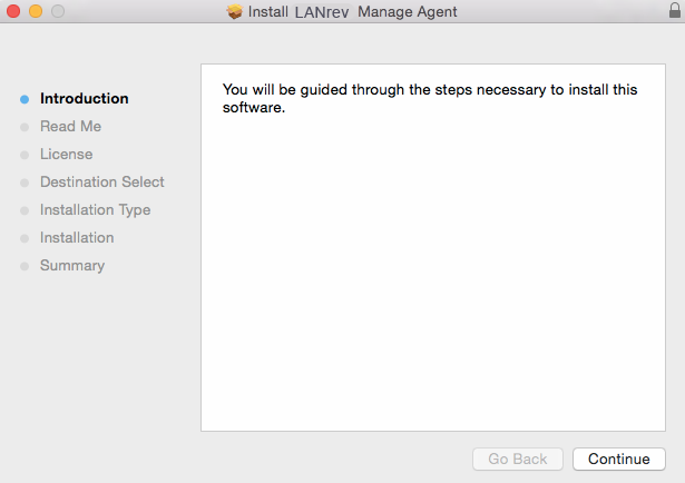 - After selecting “Continue”, an installer package will begin to download. Click the “LANrev Agent”.