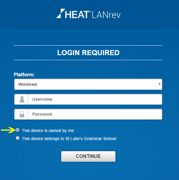 - Log in with your School username and password – *Ensure that “This device is owned by me” is selected