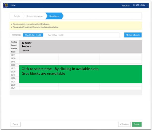 The following instructions are to help Parents make online bookings for Parent Teacher Interviews.