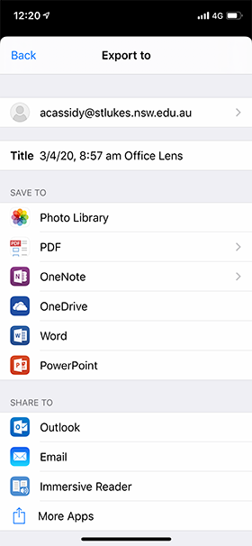 You can then share it. The Export to options are vast and you can also change the Title at this point.