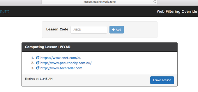 - If you wish, you can choose to have ALL other websites blocked while your students are using the prescribed list of websites. You can also tick “Require confirmation” – which will then require you to confirm when a student is trying to access the lesson using the code. However, you are free to leave both of these options unticked.